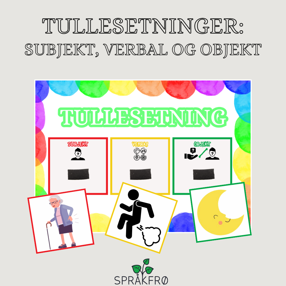 Mål: styrke barnets syntaktiske ferdigheter (3-5 ordsytringer med subjekt, verbal og objekt)