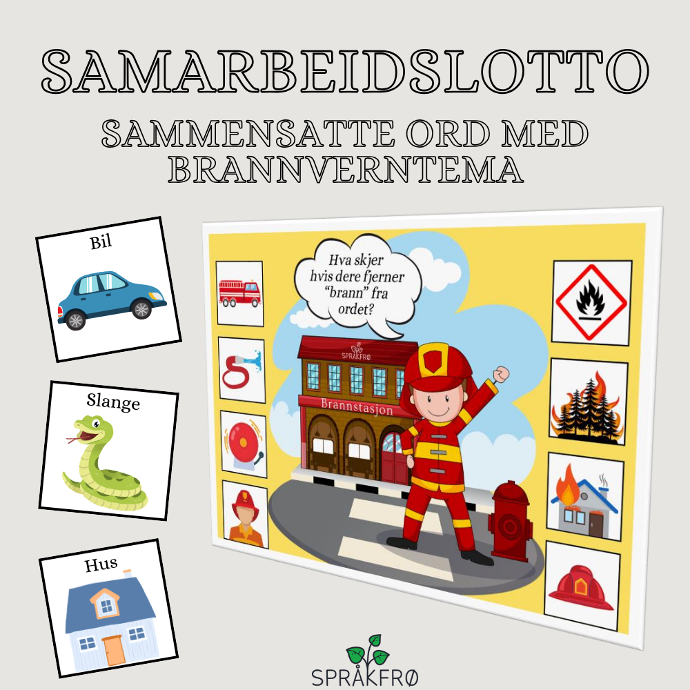 Mål: Styrke fonologisk bevissthet (stavelser i ord) eller styrke ord- og begrepsapparat relatert til brannverntema
