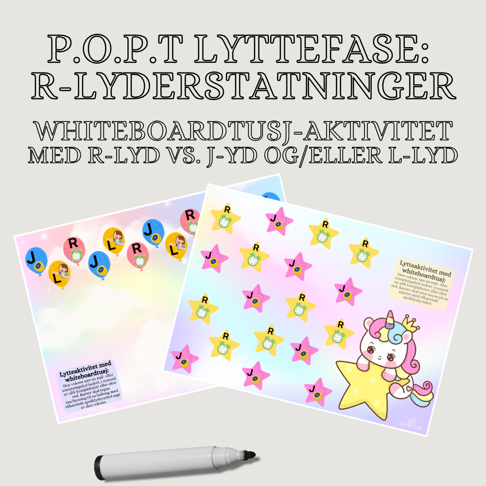 Mål: Barnet skal mestre å lytte og identifisere R-lyd, L-lyd og J-lyd