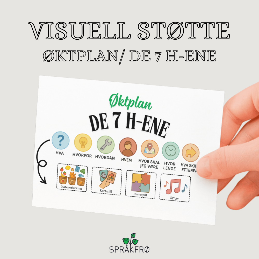 Mål: Å gi fagpersoner et visuelt og strukturert verktøy for å planlegge og gjennomføre språkpedagogiske eller logopediske økter på en måte som skaper forutsigbarhet for barn med behov for visuell støtte.