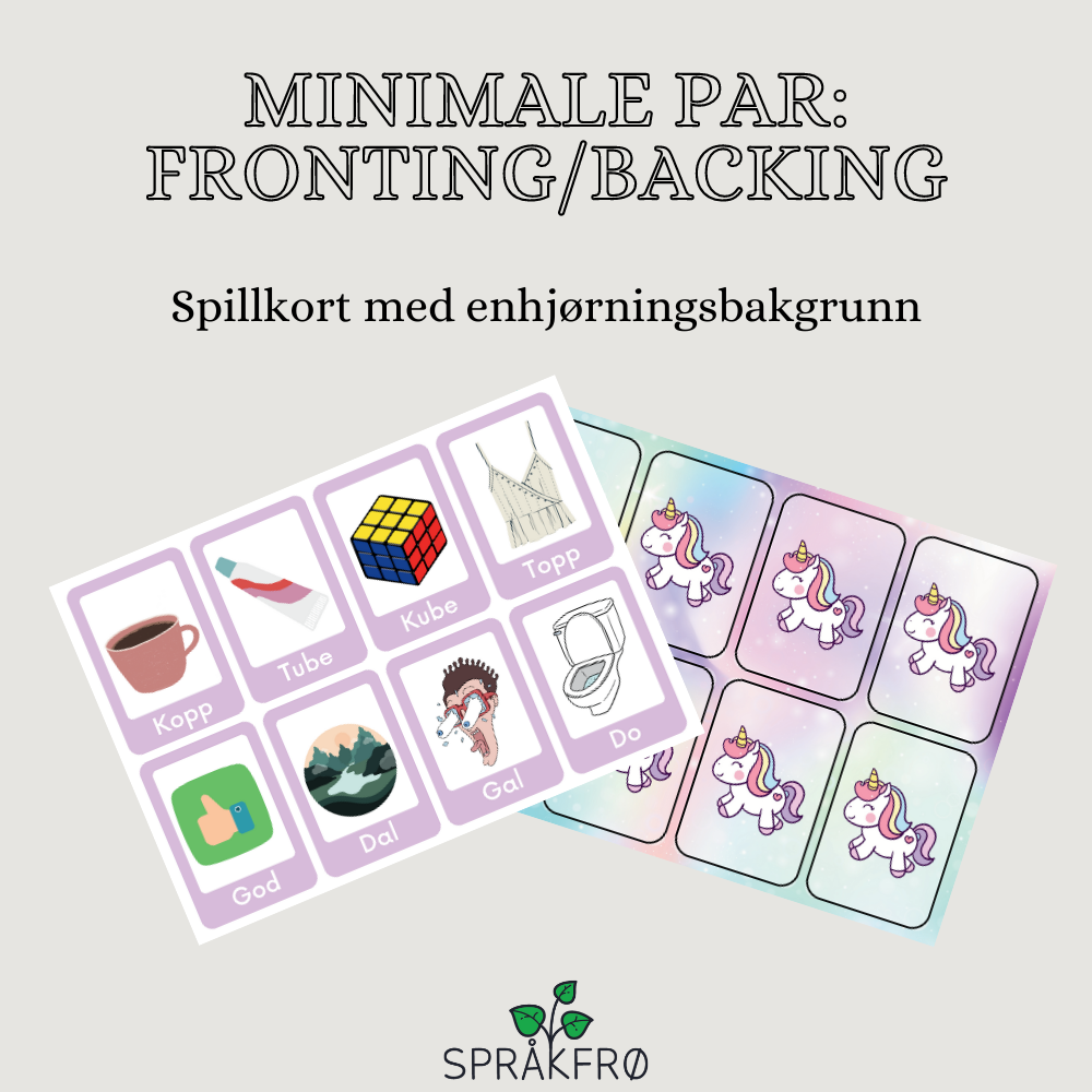 b) Barnet skal kunne manipulere og produsere ordene på spillkortene med riktig mål- eller erstatningslyd. NB. Det sistnevnte målet forutsetter ofte at barnet mestrer å produsere mål-lydene i nonord/ "tulleord" først (f.eks. kæ, gy, tu, ud). Se egne imiteringsspill på språkfrø.no.