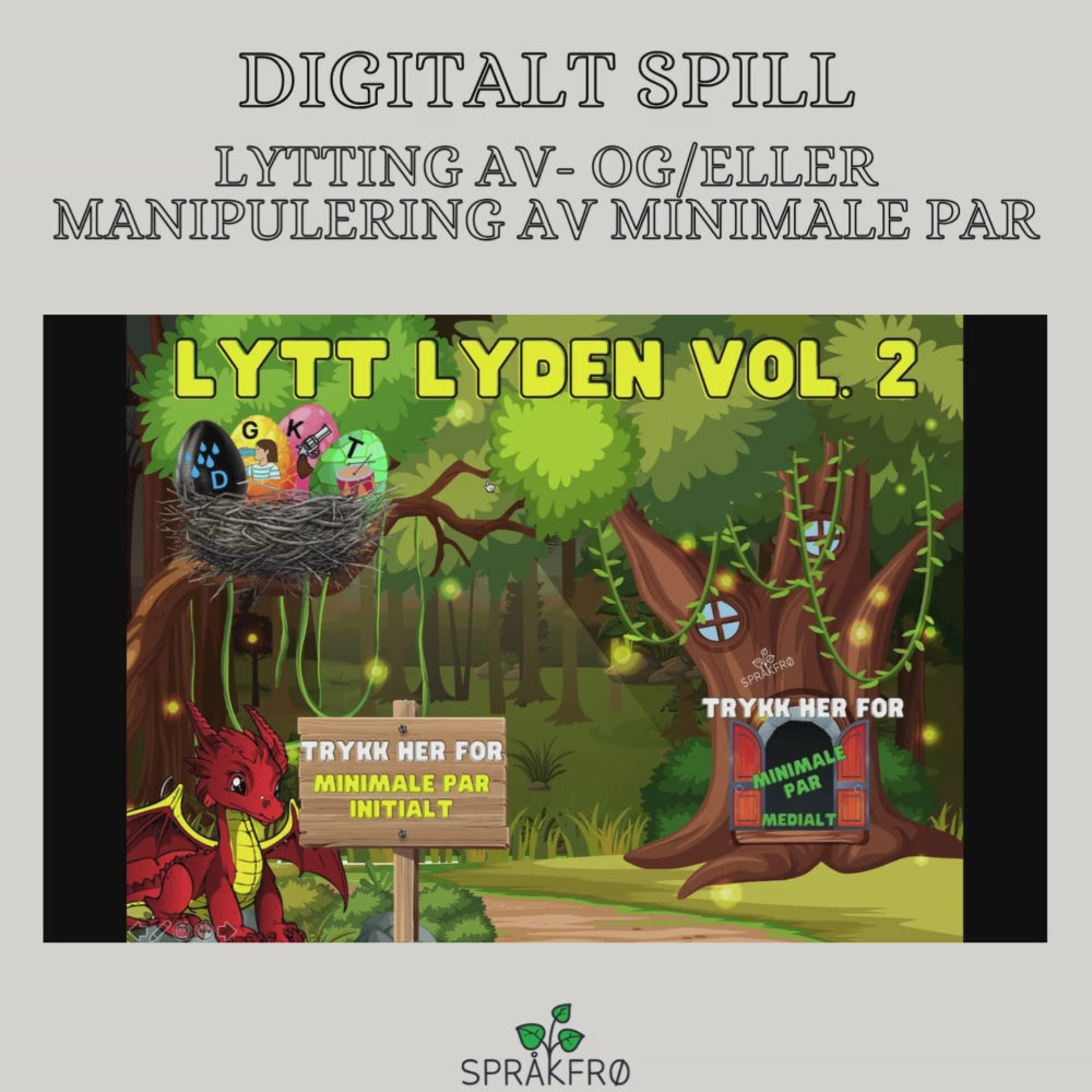 Barnet skal lytte ut hvilken språklyd som har "gjemt" seg i ordet. I spillet er det 5 minimale par der lydene er initialt i ordet (topp/kopp, god/do, dø/kø, tall/kald og dam/kam). Videre er det 4 minimale par der lydene er medialt i ordet (lede/lege, lete/leke, hate/hake, ha det/hage). Det er lydfiler tilknyttet hver oppgave.