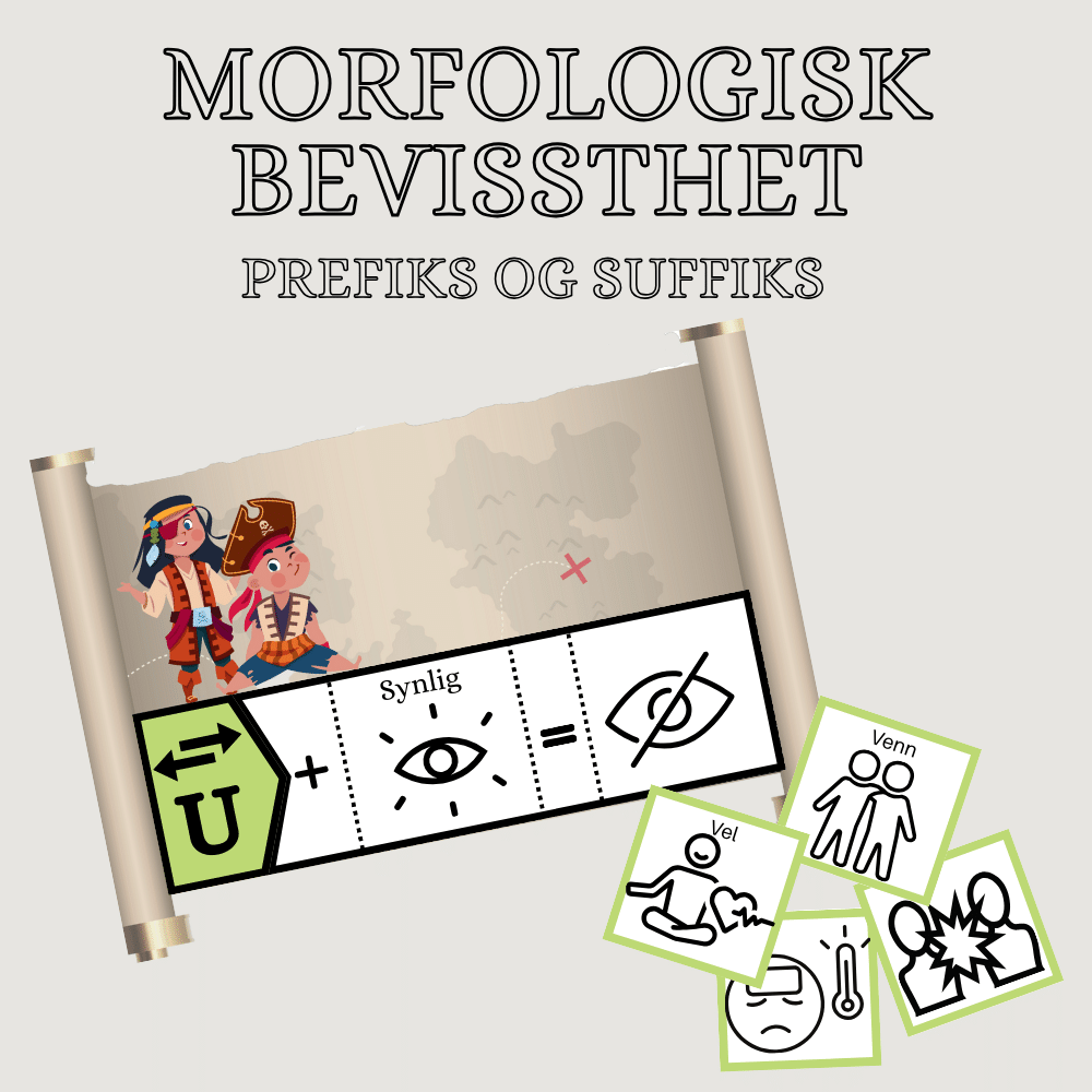 Gjennom denne språkaktiviteten kan barna få støtte til å oppdage mønstre i språket. Hjelp sjørøverne med å løse ordmysterier: Hva skjer med ordet "synlig" hvis vi putter /u-/foran? Eller hva om vi legger til /-else/ på slutten av "føle"?