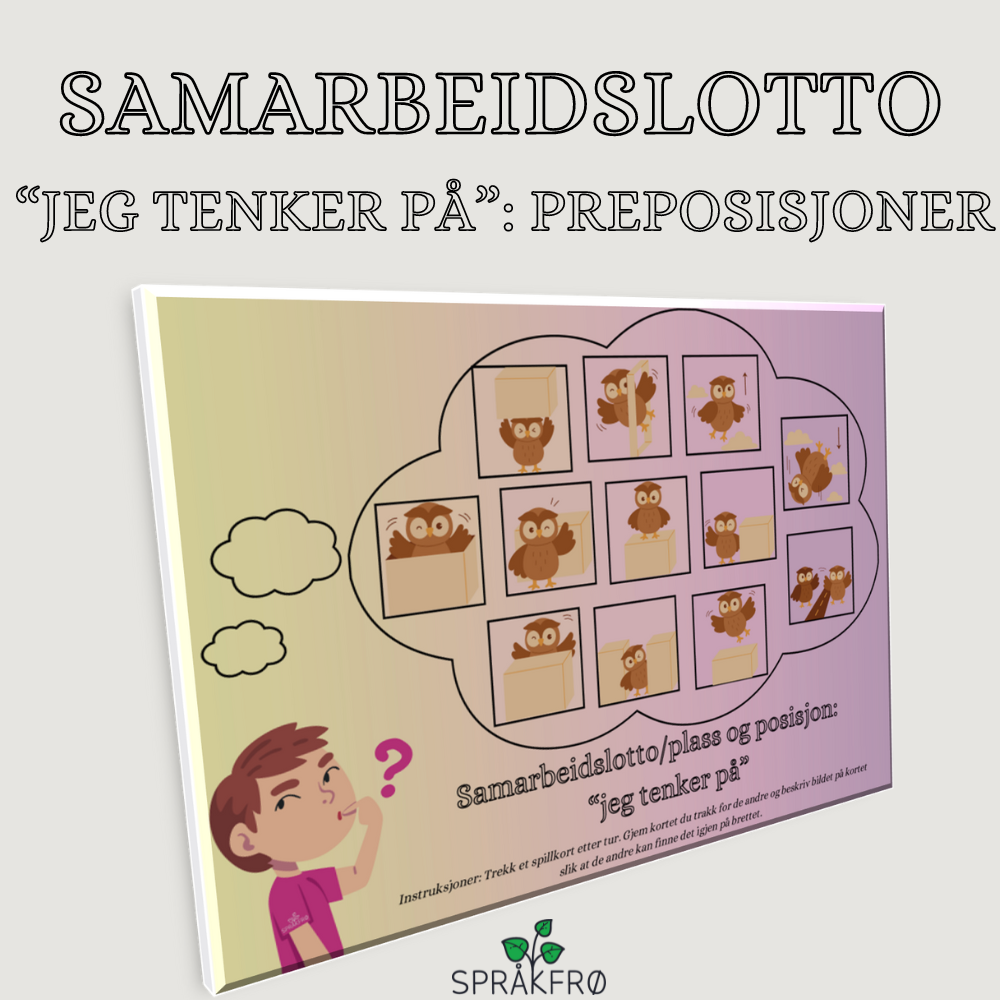 - å videreutvikle barnets ordforståelse/lytteforståelse relatert til plasseringsord (dvs. å lytte og identifisere det bildekortet som medspillerne beskriver).- å styrke barnets grammatiske ferdigheter ved å produsere flerordsytringer og/eller detaljerte bildebeskrivelser ved bruk av plasseringsord.