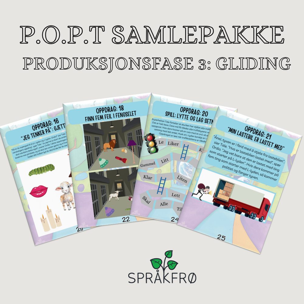 En arbeidsbok med en rekke spill- og aktiviteter som adresserer alle tre faser av P.O.P.T med fokus på L- og J-lyden. Den inneholder også bruk av minimale par i fase 1 og fase 3. Boken består av 28 sider.